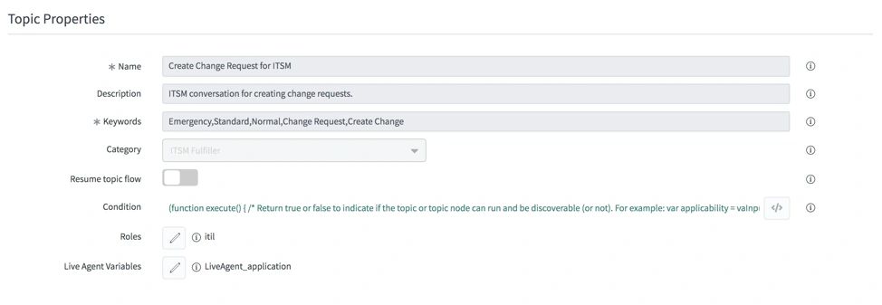 Recently a customer asked me how they can hide and show Virtual Agent Conversations based on the current user. Below is an example of a ‘Condition’ script that I tested and works like a charm. This script can be easily converted to look at any field on the user record to achieve your desired condition. I have added extra comments to help your implementation.